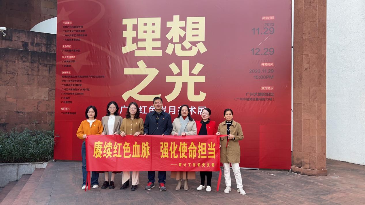 为深入学习贯彻习近平新时代中国特色社会主义思想,厚植高质量发展的文化底蕴和内涵,继承和发扬优良革命传统,12月28日上午,审计工作部党支部赴广州艺术博物馆旧址,集体参观“理想之光--广州红色岁月美术展”,开展“赓续红色血脉,强化使命担当”主题党日活动。