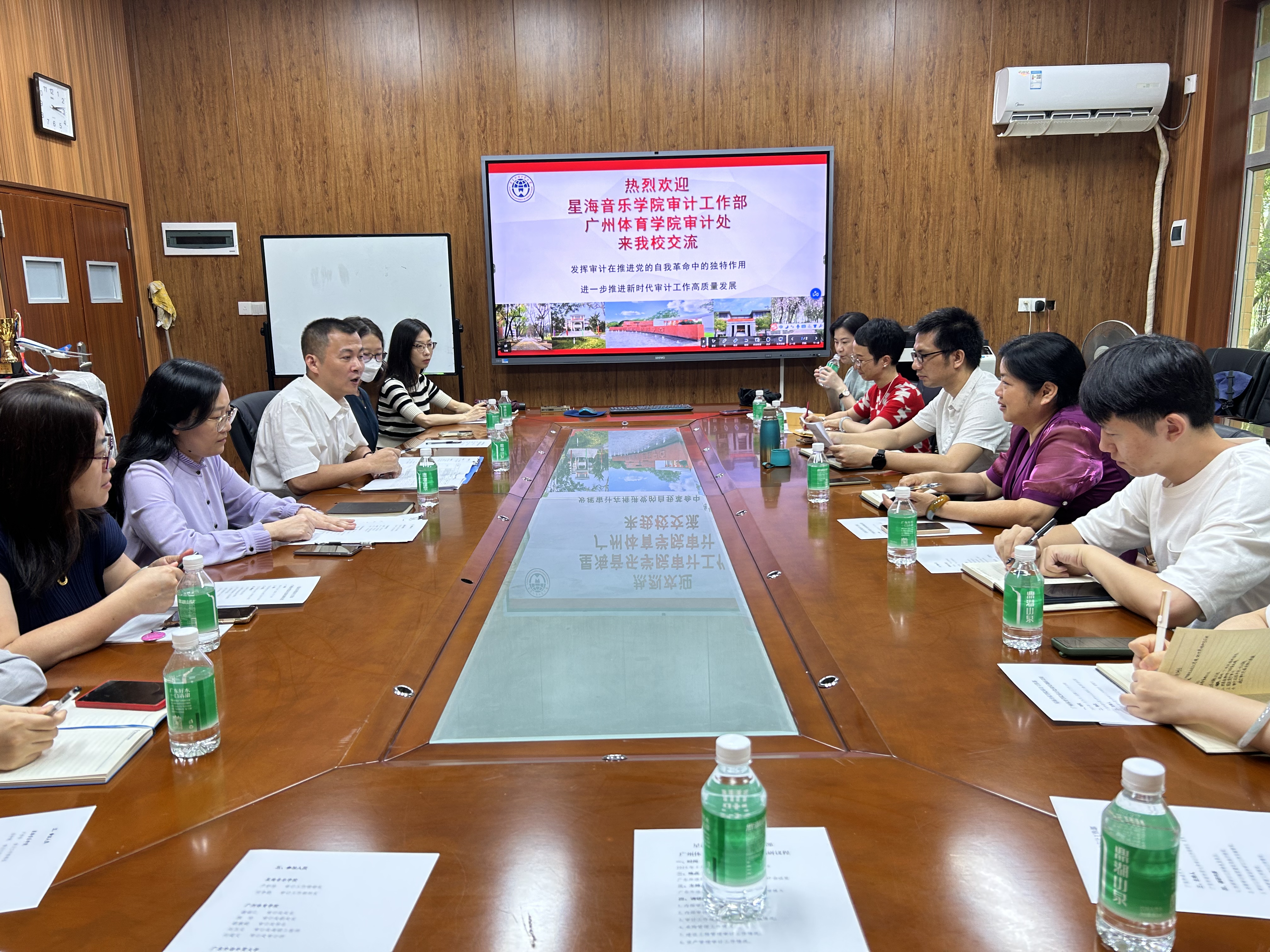 为高质量推动学习贯彻习近平新时代中国特色社会主义思想主题教育走深走实,5月24日下午,星海音乐学院审计工作部部长卢妙珍、广州体育学院审计处处长谢祖仁带队来我校开展“推进新时代审计工作高质量发展”主题调研交流活动。我校审计工作部党支部书记、部长曾健文,副部长刘瑾及各科室成员参加此次交流活动。