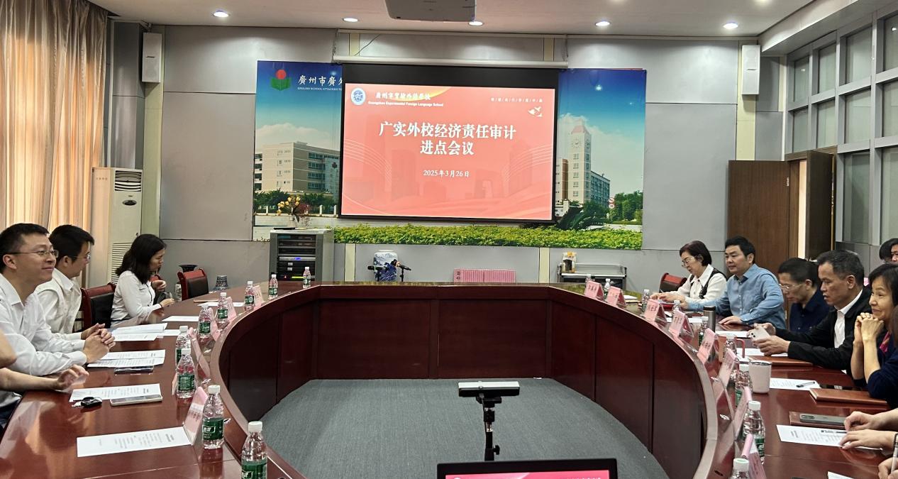 2025年3月26日上午,学校召开广实外校领导干部经济责任审计进点会,组织部袁金轩副部长、审计工作部曾健文部长出席并讲话,审计组全体成员,被审计领导干部、班子成员及教师代表参加会议。
